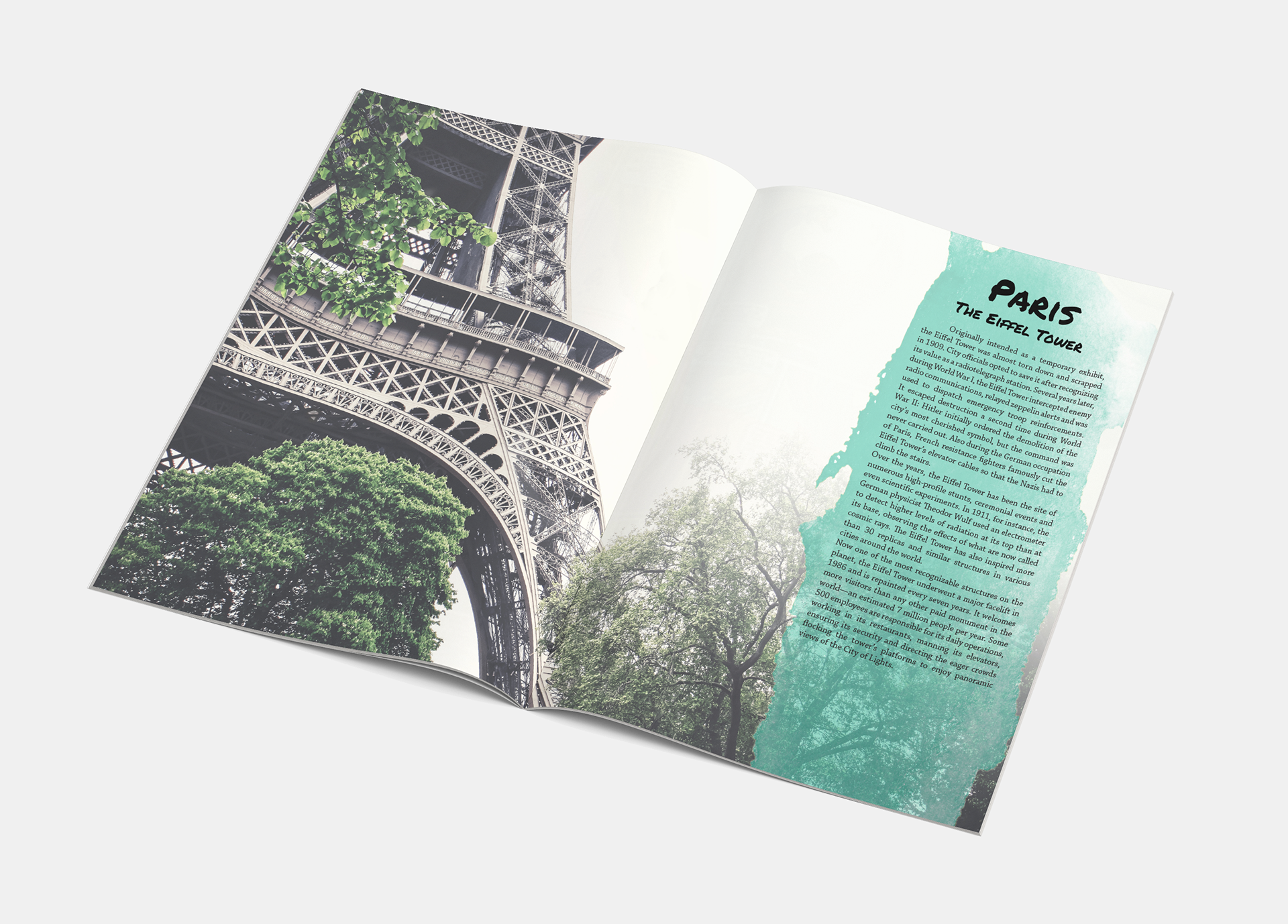 A multipage pamphlet about touring different cities around Europe and their most visited attraction.